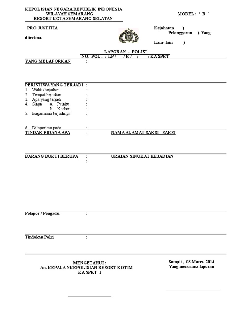 Analisis penyidikan dalam proses penangkapan dan penahanan. Cek contoh surat laporan kepolisian.contoh surat tanda bukti lapor kehilangan surat barang dari kepolisian vector photo logo inspiration surat. Meski tidak mendominasi, laporan tindakan kekerasan seperti penembakan, pemukulan saat penyidikan, kekerasan dalam penanganan demonstrasi, dan salah tangkap juga masih ada. Pembuatan laporan pengaduan polisi model b di sentra pelayanan kepolisian. Surat tanda terima laporan polisi (sttplp) surat pemberitahuan perkembangan hasil penyidikan (sp2hp) surat keterangan catatan kepolisian (skck) untuk mencabut laporan kepolisian hanya dapat dilakukan.